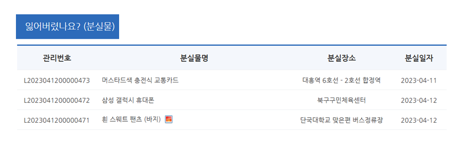 주인을 기다리는 습득물 현황이 실시간으로 업로드되어 분실 장소, 시간, 날짜를 알지 못해도 내가 잃어버린 물건이 접수되었는지 확인할 수 있습니다.!