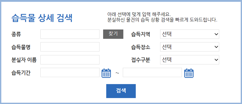 분실 위치와 시간 등 상세 정보를 알고 있으면 좋겠지만, 언제 어디서 잃어버렸는지 모를 때는 어떻게 해야 할까요? 경찰청 유실물 종합관리시스템에서 습득물 종류와 시간, 습득 지역, 장소 등을 상세하게 조회할 수 있습니다.